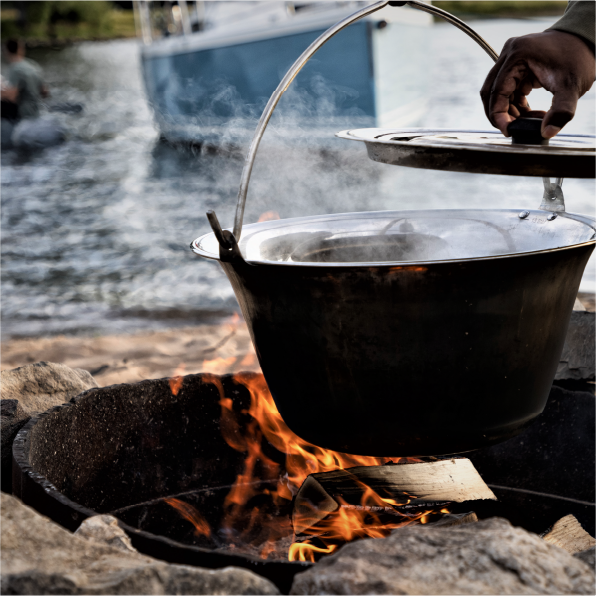 Waar een traditionele barbecue vooral praktisch is, draait koken boven kampvuur om beleving. De geur van brandend hout, het zachte geknetter van de vlammen en het ambacht van koken met natuurlijke hitte maken elke maaltijd bijzonder.